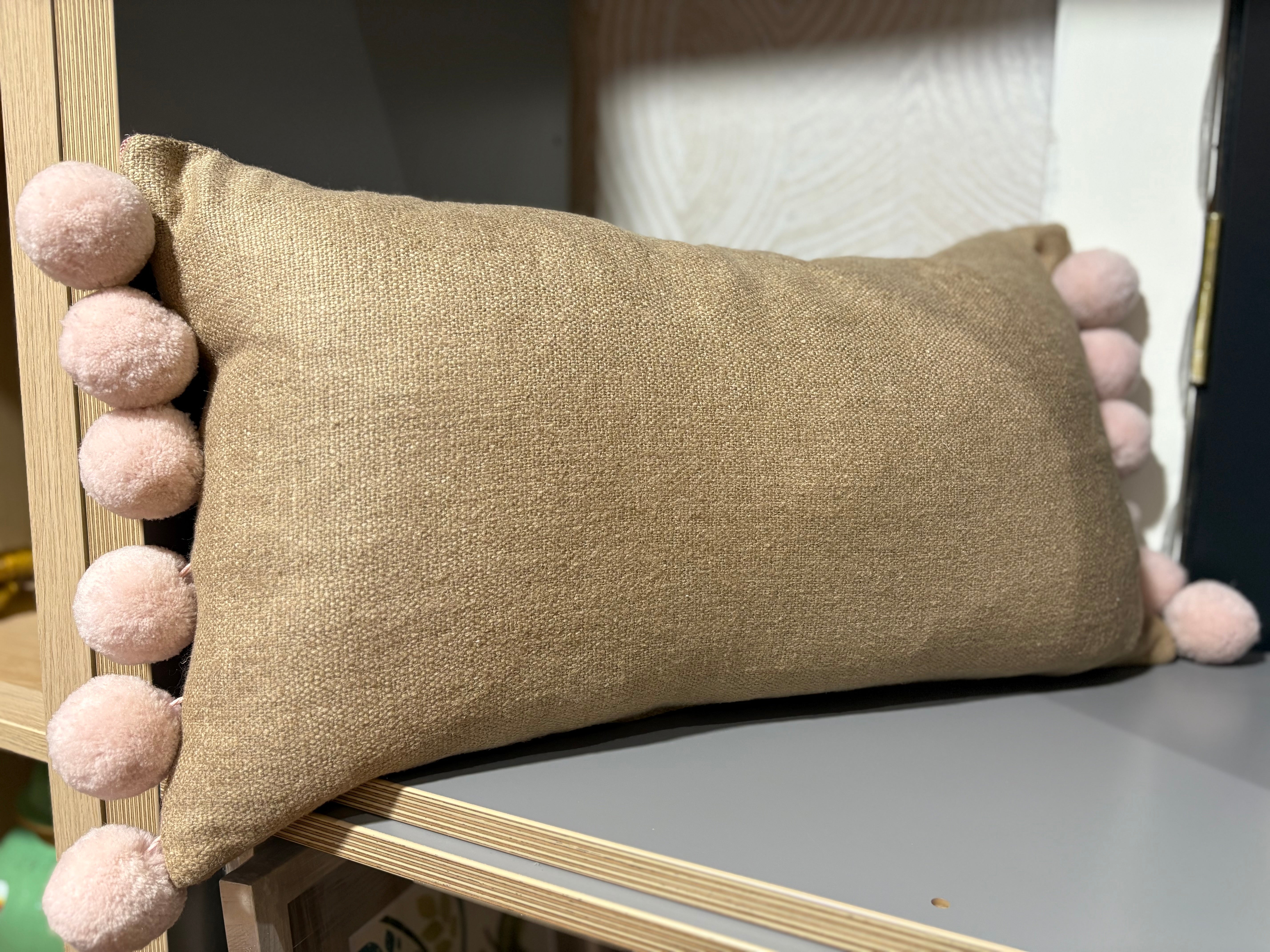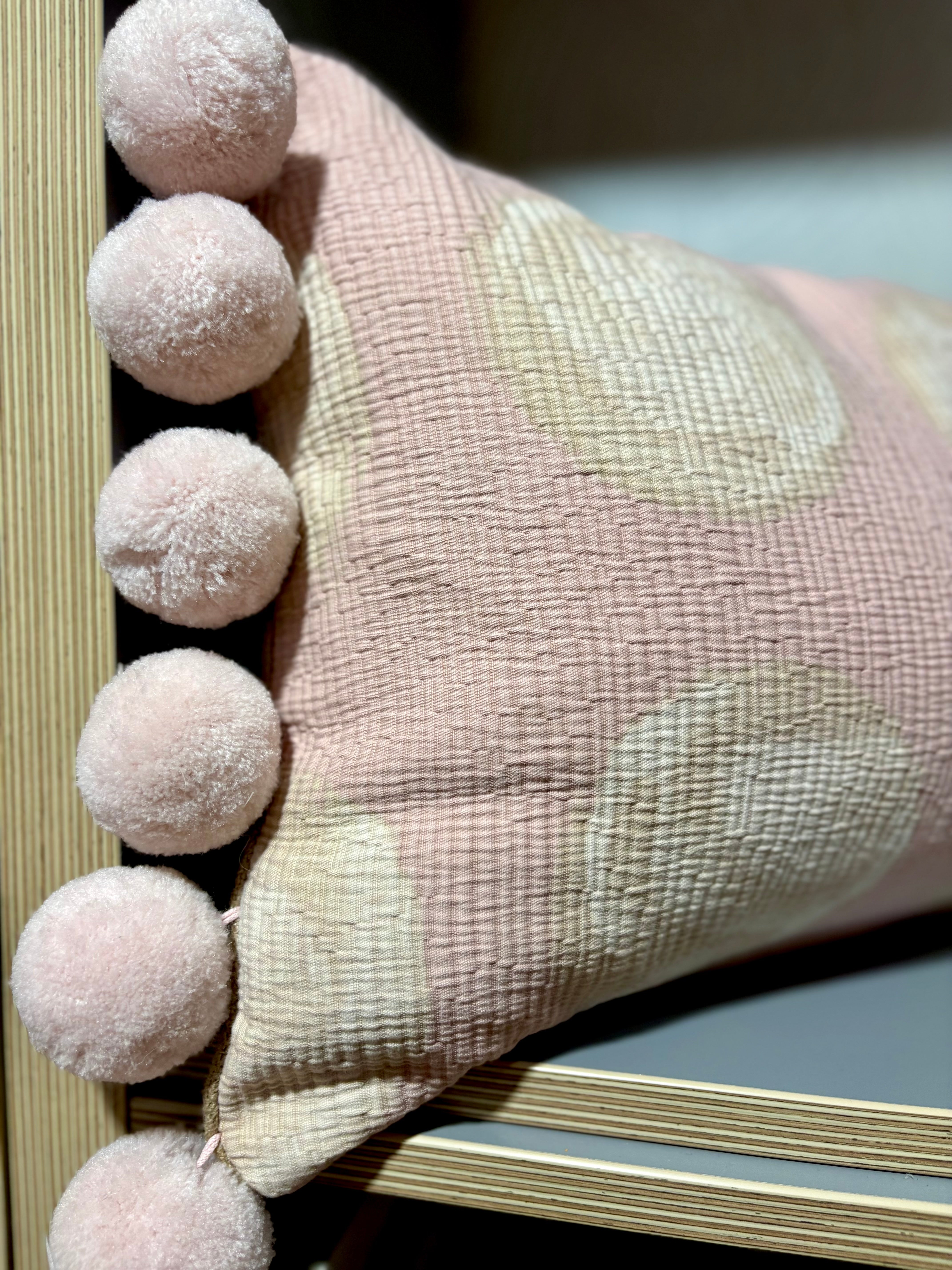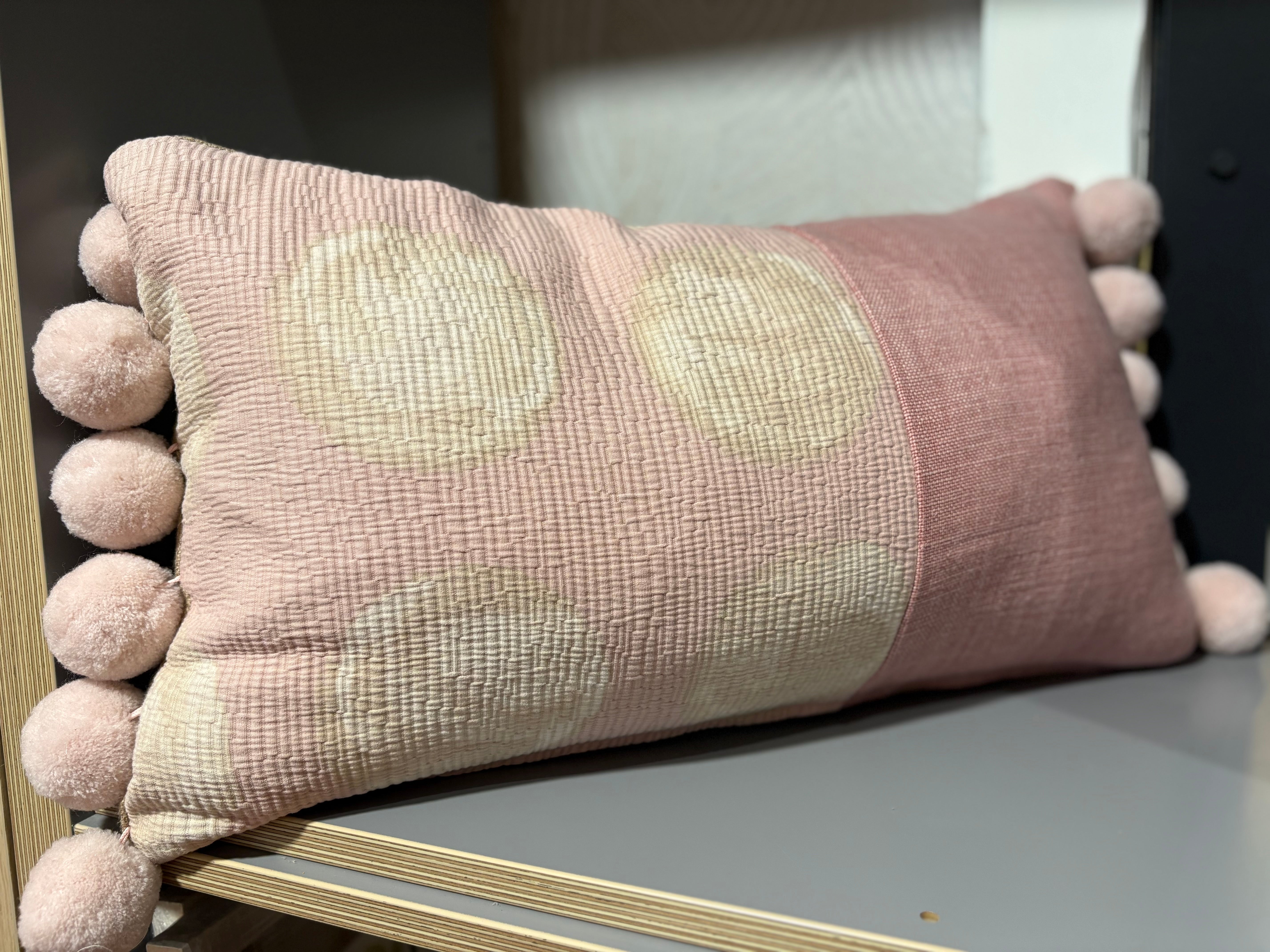 Pierre Frey and Boussac fabrics combined with jumbo Pom Pom trim to create this fabulous cushion.
