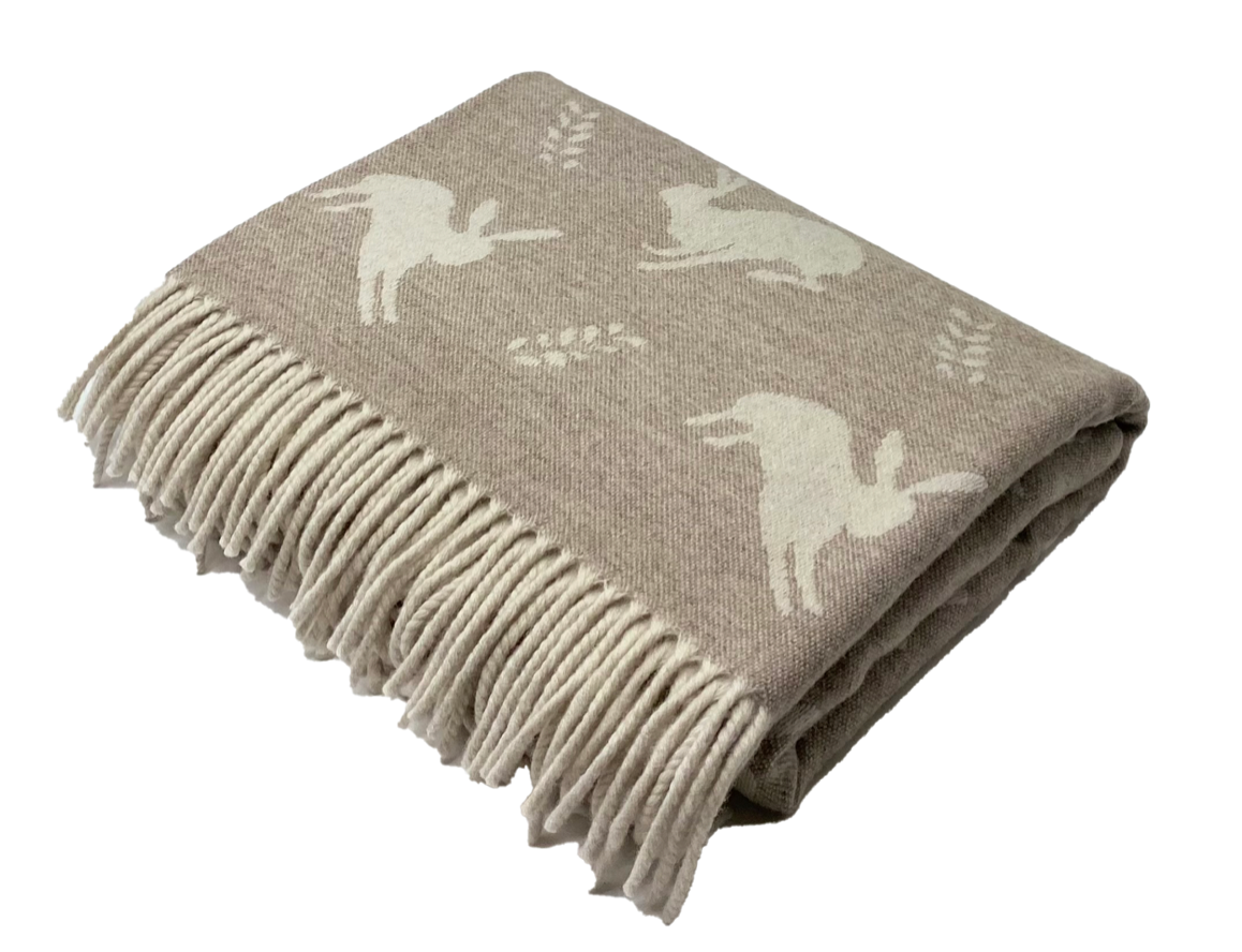 Our Wildlife and Country throws are a charming range of woven jacquard designs in 100% Merino Lambswool. The range includes hare, dog, and horse and a feather throw; perfect in a cosy country setting.